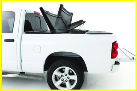 Of course we are interested in the Smittybilt Smart Cover. This folding tonneau cover from Smittybilt uses some unusual materials in its construction. Its frame is made from 6061 grade aircraft aluminum for strength and low weight. The frame is covered with a heavy leather grain vinyl with reinforced corners. A cam based speed lock system helps you to easily open, close, remove or install the Smart Cover. Other features include; long lasting ballistic nylon straps, nylon reinforced plastic buckles, a fulcrum based hinge system, a cargo net and an all weather sealing system to keep everything in your truck bed clean and dry. Wow!